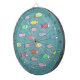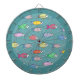 Flerfärgade fiskar på turkos darttavla.
