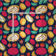 Ljusstark utskrift med flerfärgade frukter på blå bakgrund