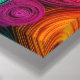 Detta abstrakta konstverk sprudlar av energi, rörelse och djärva färger och drar betraktaren in i en hypnotisk värld av skiktade cirkulära former. Sammanflätade spiraler pulserar utåt i rika nyanser av guld, karmosin, magenta, teal och djup violett och skapar en dynamisk känsla av rytm och djup. Varje cirkulärt mönster känns levande, som en puls eller omloppsbana, och bidrar till en harmonisk men kraftfull visuell komposition.