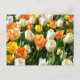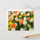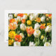 Flerfärgade tulpaner i trädgård helg vykort