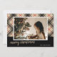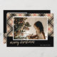 God Jul! Ett platt vågrät med anpassade, med svartvitt, beige och rött och skripttypografi på framsidan. Anpassa genom att lägga till två av dina favoritfoton, först namn på framsidan och efternamnet på baksidan. Se vår webbplats för fler julkort och julidéer—> www.tkmpartyprintables.com