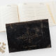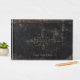 Vintage mörk antique bok täcke med anpassade namn eller monogram under ornate fleur design i faded guld löv.