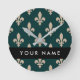 Fleur de Lis, Beige on Green, Royal, Your Name Rund Klocka