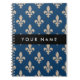 Fleur de Lis, Beige on Navy Blue, Royal, Your Name Anteckningsbok