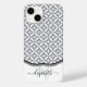 Yta mönster med klassisk loppur de lis-form, uppdaterad i ett färskt rent mönster, kapslat i harlequinformer och gammalt ringar i grått på en vit bakgrund med en vit grund-skalad kant med grått och svart överkant gräns. Lägg bara till det första och sista namn för att slutföra designen. Sammansatt design © 2021 Helgdag Hearts Design.