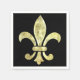 Paket med 50 vita pappra cocktailblöjor med en bild av guld löv fleur de lis på svart. Se matchande trasa-napkin, kökshandduk, trasa-bordstablett, papper bordstablett och underlägg. Se hela Cancan Napkin-samlingen i LIVSMEDEL/BEV | Linens-sektion.
