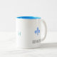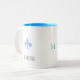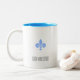 Ljusblå Fleur de Lis-monogram på vit kaffe-, te- eller chokladmugg. Perfekt souvenir för alla! Fleur de Lis står för renhet och perfekt kärlek.