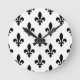 Fleur de Lis Mönster, Royal Fransk, Black on White Rund Klocka