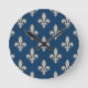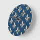 Fleur de Lis Mönster, Royal Fransk, Cream på Blue Rund Klocka