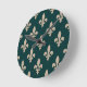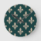 Fleur de Lis Mönster, Royal Fransk Cream på Grönt Rund Klocka