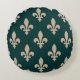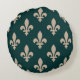Fleur de Lis Mönster, Royal Fransk Cream på Grönt Rund Kudde