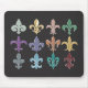Musen vadderar med den Fleur de Lis designen på svart