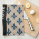 Fleur de Lis, Navy Blue on Beige, Royal, Your Name Kökshandduk