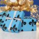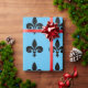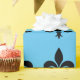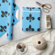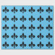 Omslagning papper visas i en blå och svart Fleur De Lis-utskrift. Anpassa det här objektet eller köp som det är.