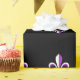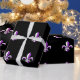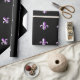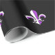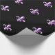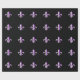 Det djärva lila- och vit fleur de lys mönster på svart bakgrund gör detta en underbar sjal för tillfällen.