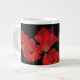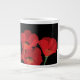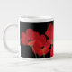 Den röda vallmoodlingen, den populäraste vilda blomman över hela världen och den internationellt erkända symbolen för att minnas fallna soldater för att ta sig ut ur lera och härjningar i krig växte upp som en vacker röd vallmo. I maj, fält abloom i Provence, Frankrike. Vibrant röd blomgrafik inställd mot en bakgrundsfärgning av svart i ett stort, fetstilt mönster. Originalkonst av konstnären Margaret Loftin Vitling.