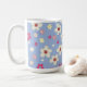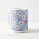 Sur un fond bleu pastel, de petites fleurs de printemps, parfait pour les fêtes d'enfant, et ambiances cosy romantiques