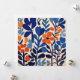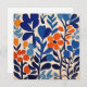 Fleurs bleues et orange sur fonds beige, style découpage, inspiration sixties- seventies, Matisse.