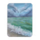 Den här magneten är en vacker bild av havet, som fångar det centrala i en lugn kust. Konstruktionen visar mjuka vinkara som överlappar vid stranden, inramad av vibrant himmel i blå och rosa, vilket framkallar en solnedgång. Perfekt för alla som kärlek i havet, denna magnet är en charmerande påminnelse om strandsnäckor och äventyr i havet.