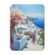 En flexibel fotomagnet med snyggt och en vattenfärgsbild av picturesque Santorini. Vita hus med blå kuster, azure sea och blomning bougainvillea skapar en atmosfär av romantik och avslappning. I hörnet av magnet finns en känslig inskrift "Med kärlek", som gör det till en underbar souvenir, en gåva till nära och kära eller ett minnesvärt tillbehör efter ett resa. En sådan magnet kommer att vara en vacker accent på kylskåpet eller i en resandes samling.