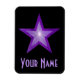 Modern design med en "strålande" lila och vit stjärna på en svart bakgrund. Med ett anpassade som du kan anpassa med egen text, bilder och egna idéer kan du skapa en graderad magnet. Observera att detta är en tryckt bild som skapats med originalfotografier och digitalteknik, som inte skiner eller innehåller riktiga miniatyrbilder.