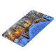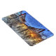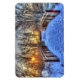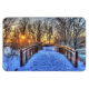 Fotografi av en bro med snö under en solnedgång, tryckt på ett flexibelt magnet.
