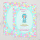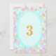 Söt flicka 3-års födelsedagsprinsessa med pastellfärgade ballonger i olika färger på turkos inbjudan. Texter och siffror kan anpassas för andra åldrar!