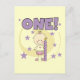 Baby födelsedagspresent T-shirts, kroppsdräkter, kort, klistermärken, magneter, säckar och andra förstaårsartiklar med ett sött flicka i en blöja, ett stort enkelljus och text som lyder ONE!