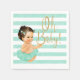 B flicka i mint tutu och pärlhalsband. Guld glitter Oh Baby! och mint glitter och vit rand bakgrund.