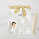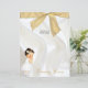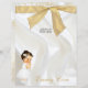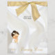Vackert flicka med brunt ögon i hennes dödande klänning och guld kor halsband. Bakgrund är vit satatin med en guld-buskning.
