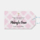 Baby-baptismen i elegant tack för er märkre gör det lättare att uttrycka er tacksamhet. Rosa, vit och guld kor med vit mönster. Anpassa med hennes namn och baptismdatum.