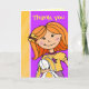 Söt modern grafisk flickor efter festen tack-kort. Flicka kramar sin lyckliga vita kanin. Personifiera detta kort med det tackmeddelande du önskar. Originaldesign av Sarah Trett.