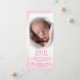 Vackra födelseattentat för nyfödda flicka. Anpassa dem genom att lägga till foto/bild och information: namn, vikt, längd, ställe från födseln. Kortets baksida har alternativet Lägg till dikt eller annat meddelande. Rosa och vitt färg.
