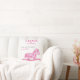 En förtjusande rosa som rockar häst teckning. Den här söta kudden välkomnar en flicka. En personlig keepnékudde omfattar baby namn, födelsedatum, födelsetid, födelsevikt och längd. Baksidan av kudden är rosa.