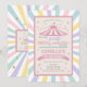 Flicka Cirkus Rosa Födelsedagsfest Inbjudan, har cirkus element och mönster. All text är redigerbar.