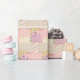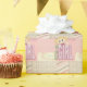 Patchwork quilt mönster i rosa och grönt färg med en docka till nyfödd bebis-tjejen.
