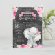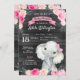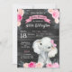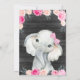 Mycket söt liten Flicka Elefant med Rosa Rosor och Grå Trärustik Bakgrund design Baby Shower Inbjudan. Alla fält är redigerbara.