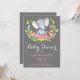 Flicka Elefant Bebis Dusj Inbjudan Rosa och Grå Kort. Flick Bebis Dusj Inbjudan. Akvarell Blomma och Blad. För ytterligare anpassning, klicka på "Anpassa" knappen och använd vårt designverktyg för att ändra denna mall.