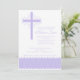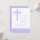 Vår vackra lila dopkors-inbjudan eller dopinbjudan för en flickas dop har ett fint litet kors med en tryckt ljuslila spetskant på en krispig vit bakgrund. Vår inbjudan har tryck på båda sidor med en matchande lila baksida. Besök vår butik för att se denna inbjudan i ett brett urval av moderna färger och för att se vårt urval av religiösa inbjudningar för flickor, inklusive kommunioninbjudningar.