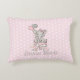 Den lilla accentkudden i flicka med en berömvärd elefant som håller en ballong i rosa och silver glitter på en vit prickbakgrund. Anpassa med ditt barns namn. Dessa kuddar gör en perfekt babyduschgåva och är ett underbart tillskott till en barndaghem.