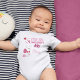 Cute personlig baby-dräkt med min första Alla hjärtans dag skriven i rosans nyans. Söt elefant som blåser rött och rosa hjärta ur sin skräppbild via www.prettygrafik.com