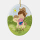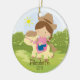 Personifiera den daterade gulliga lite uppsättningen för prydnaden för jul för flickan för ryttaren för brunettcowgirlhästryggen på en gräs- & trädbakgrund. Den gulliga hästprydnaden presenterar den mest sweetest liten flicka som rider henne ponnyn. En undra julgåva sure som ska uppskattas för många år till komen.