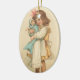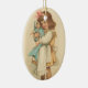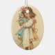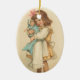 Flicka för vintagejulhälsningar med dockan julgransprydnad keramik