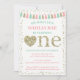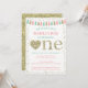 Flicka Första Födelsedagsinbjudan Rosa Mint Guld Inbjudningar