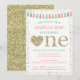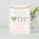 Denna inbjudan sätter scenen för en vacker första födelsedagsfest med sin rosa, mint och falska guldglitter-färgpalett. Tryck med en halvglansig eller pärlglansig finish för att få det falska glittret att POPPA!