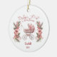 Denna vackra rosa julprydnad med en baby-vagn och rosa poinsettias är ett trevligt sätt att fira den speciella flickans första jul i ert liv. Du kan anpassa hennes namn och året så att du kan minnas julen i åratal till komen.