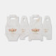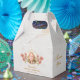 En blomstergeometrisk första kommunion-design för flickor. På två sidor har den en oregelbunden guldbård från två gula hexagoner som överlappar varandra, med ett guldkors högst upp och med rosa magnoliablommor till vänster och höger. Under bården är namnet skrivet i ett elegant kalligrafiskt skrivsätt, resten i versaler.