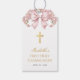 Flicka Första Kommunion Rosa Blommig Slinga & Guld Presentetikett
