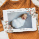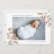 Elegant och modern födelseannonskort med rosa akvarellblommor och ditt nyfödda barns foto på framsidan och 2 på baksidan. Du kan lägga till barnets namn och födelseinformation på framsidan av kortet. Detta kort är designat för födelseannonsering för flickor.