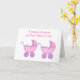 Underbart "Grattis"-kort för tvilling flicka. Det här hälsningskortet för trendiget innehåller två rosa baby-buggar med anpassadet ord "Grattisar på tvillingbänk flicka" på framsidan. En rad lavender lila blommor är på insidan av det lämnat kortet med högerna som har anpassade ord. De rosa buggarna accentueras med lavender lila färg. Den här grattisen koordinerar kort med andra produkter för baby i den här butiken för underbara duschpresenter och andra produkter. Buggen är snyggt, söt och stollig originalkonst av Phyllis Dobbs. Helt anpassade.